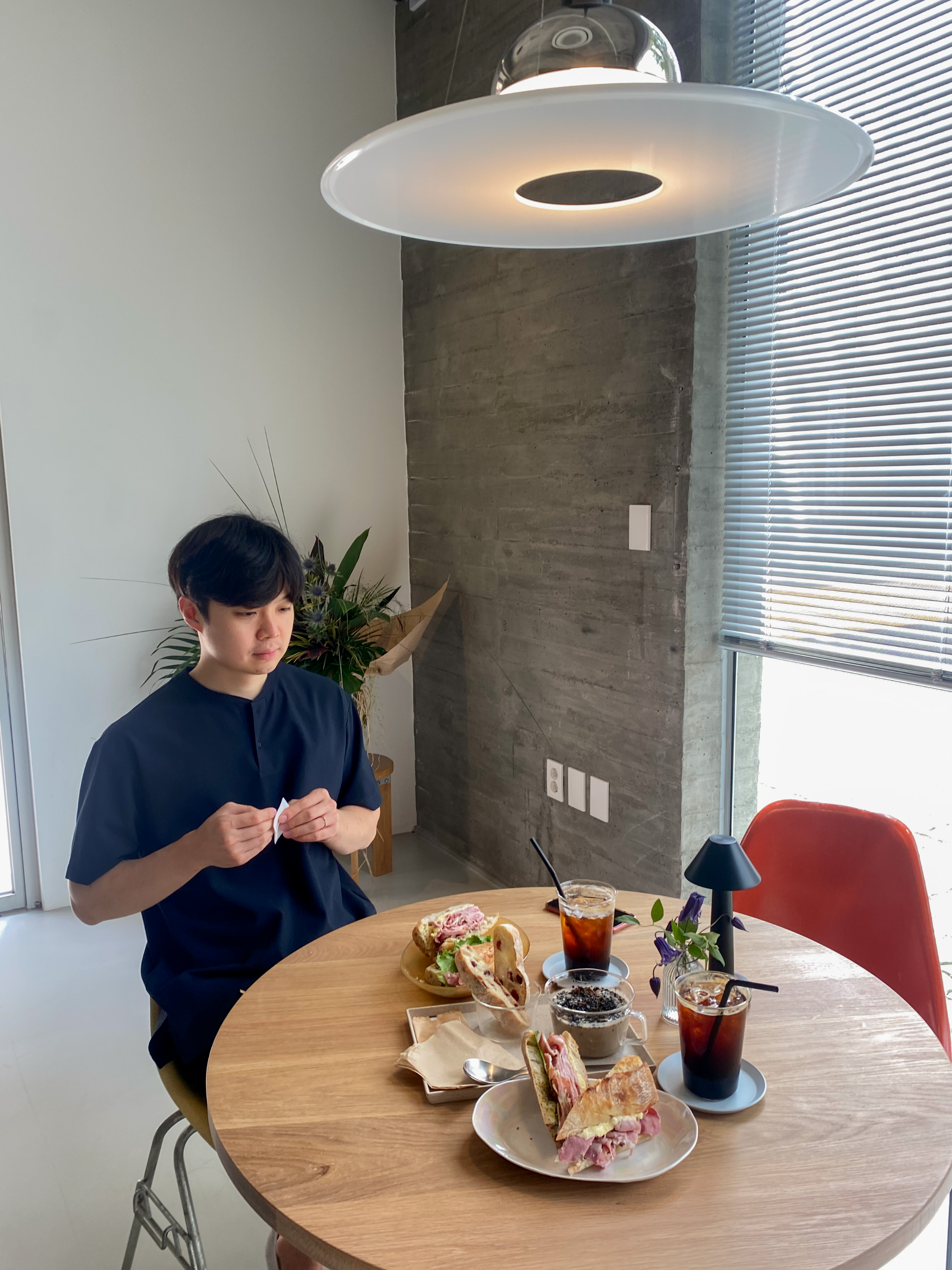 테이블에 있는게 할미꽃인가? 방울꽃인가? 하튼 테이블에 생화가 있으면 감성있어 보인다.